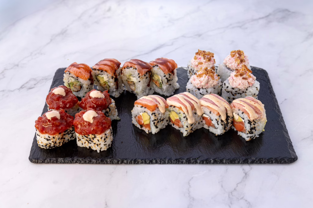 4 uramaki california 4 ura atun picante 4 ura salmon bitter 4 ura de anguila petter